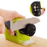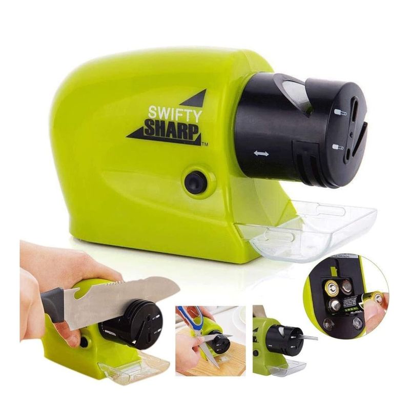 Recupera el filo de tus cuchillos y herramientas con este práctico afilador eléctrico portátil. Ideal para el hogar, permite afilar cuchillos, tijeras, destornilladores y más con rapidez y seguridad. Su diseño compacto y ergonómico se adapta fácilmente a cualquier espacio en la cocina. Funciona con baterías, por lo que no requiere cables, y cuenta con ranuras especializadas para distintos tipos de hojas. ¡Dile adiós a los cuchillos sin filo y haz tus cortes más fáciles y seguros!