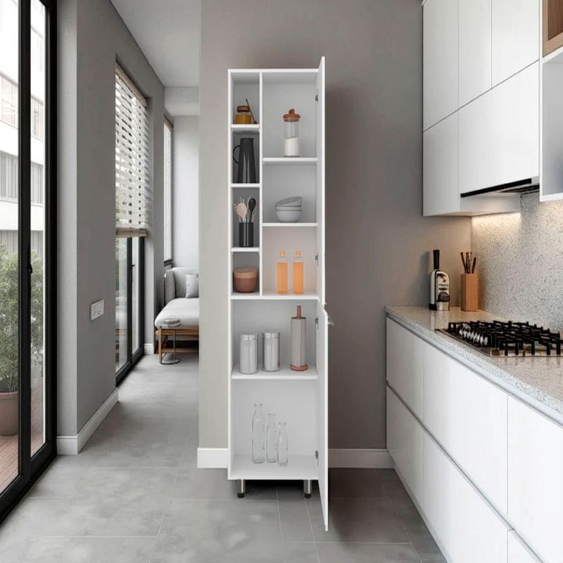 Mueble alacena con amplios espacios para almacenamientos, dos puertas abatibles y de facil instalación con medidas de: ALTO 204 ANCHO 58,6 FONDO 33,3