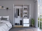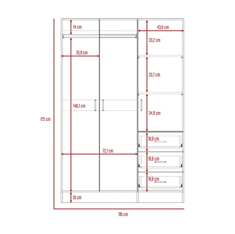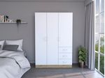 Innovador armario Norvik color Duna o blanco perfecto para acompañar habitaciones o bliliotecas el cual cuenta con tres cajones deslizables y con manecilla. Tres puerta abatibles dando espacio para colgar ropa y almacenar documentos