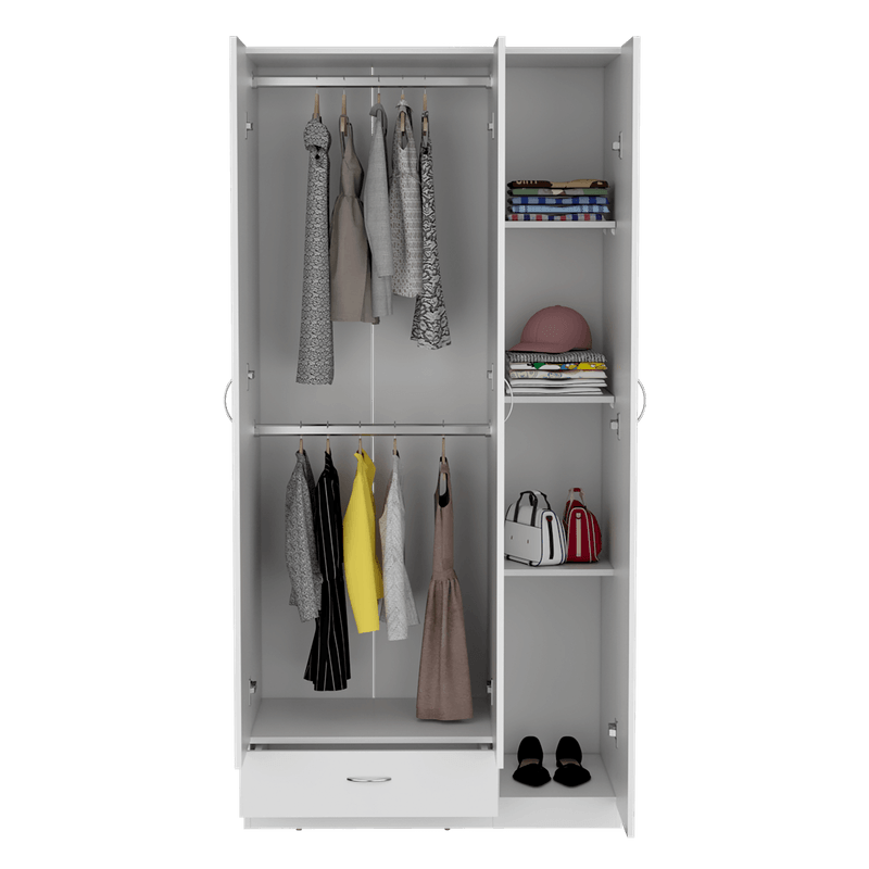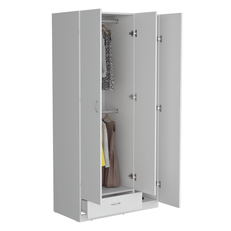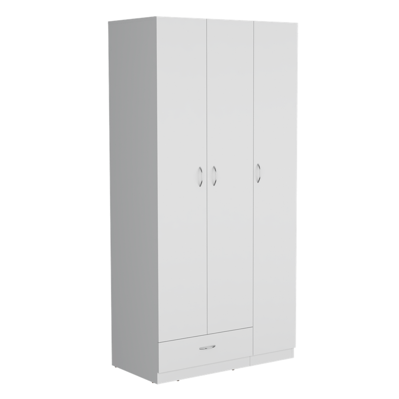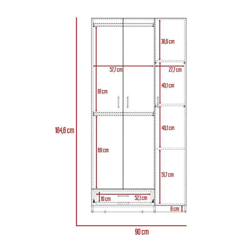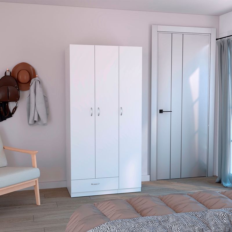 Armario con un cajon, amplios espacio para ropa, tres puertas abatibles con medidas de: ALTO 184,6 ANCHO 90 FONDO 47,3