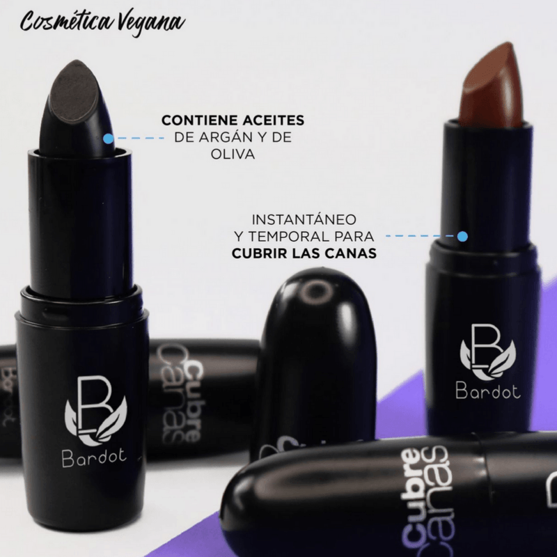 CUBRE CANAS BARRA BARDOT Es un producto para retocar y cubrir instantáneamente las canas como corrector de color, pero de un modo temporal. Producto que no tiñe el cabello, se va con un simple lavado. CUBRE CANAS BARRA BARDOT permite camuflar o disimular las canas entre coloración y coloración y las raíces de forma temporal. Escoge el color que mas se parezca al tono de Cabello.