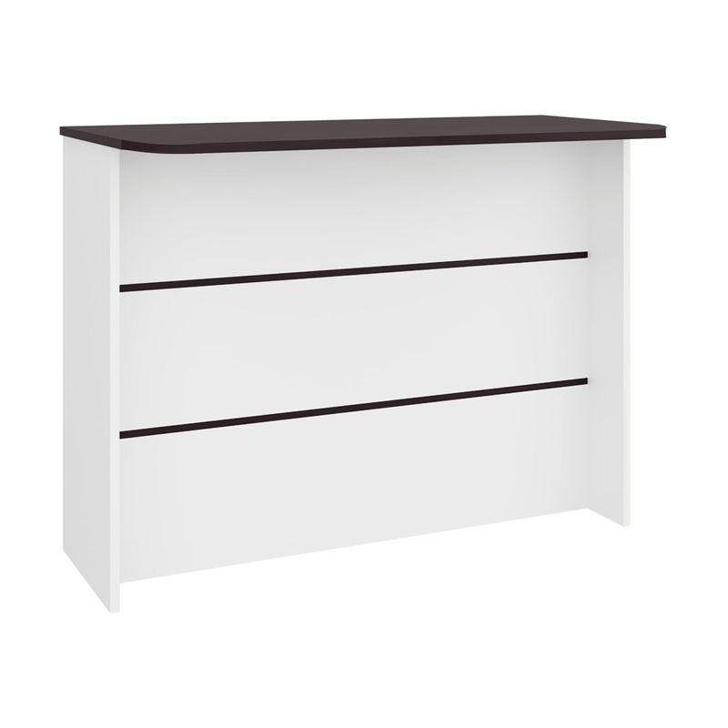 Barra de cocina de facil armado, diseño moderno, espacio para dos asientos, multiples entrepaños y superdicie para ubicar objetos y alimentos con medidas de: ALTO 90 ANCHO 120 FONDO 60