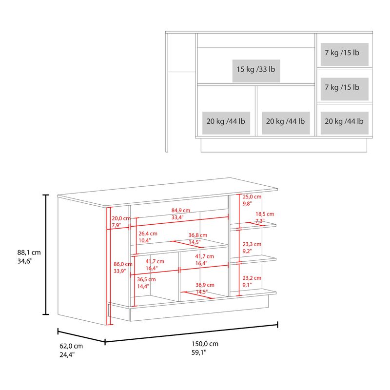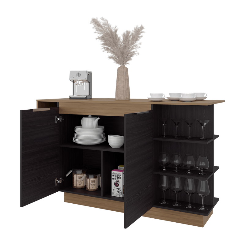 Barra de cocina moderna, con entrepaños, 2 puertas y espacios para ubicar objetos de cocina, de facil instalación con medidas de: ALTO 89,2 ANCHO 150 FONDO 62