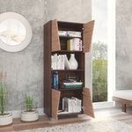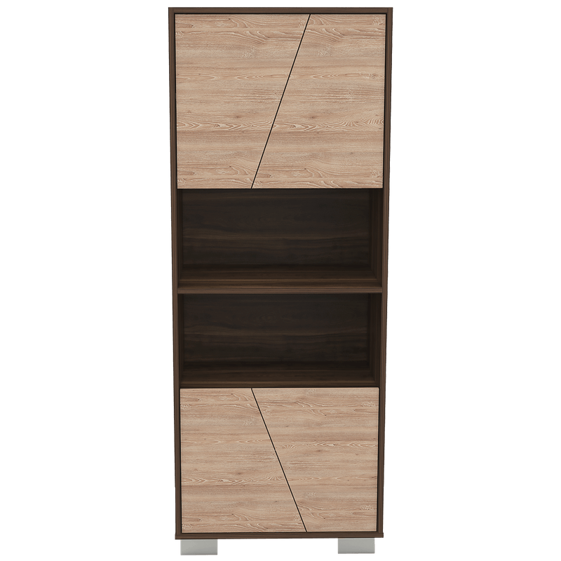 Biblioteca con cuatro puertas, diseño moderno, amplios espacios para ubicar libros y objetos decorativos con medidas de: ANCHO 59,5 ALTO 153,5 PROFUNDO 38