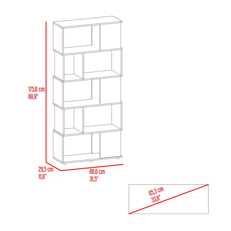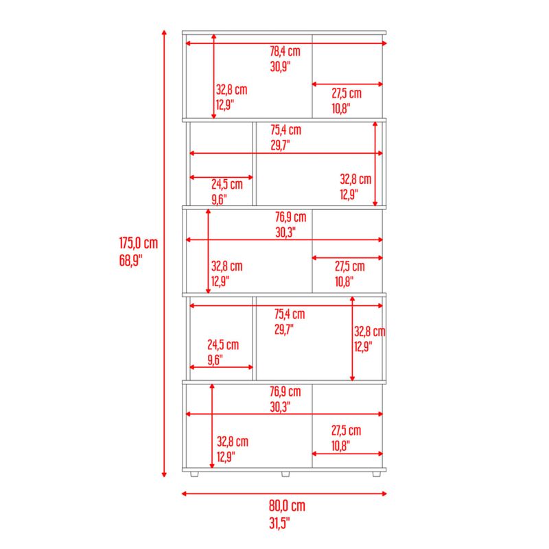 Biblioteca con diseño minimalista, compartimientos para objetos de estudio o decorativos, multiples entrepaños y superficies para ubicar objetos con medidas de: ALTO 175 ANCHO 80 FONDO 29,5