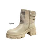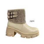 RopaZapatosMujerBotin beige doblez apliques plateado tacon