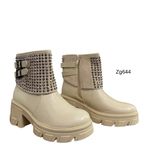 RopaZapatosMujerBotin beige doblez apliques plateado tacon