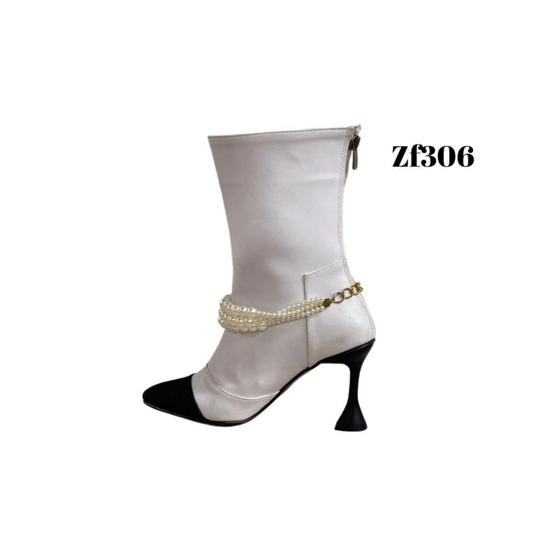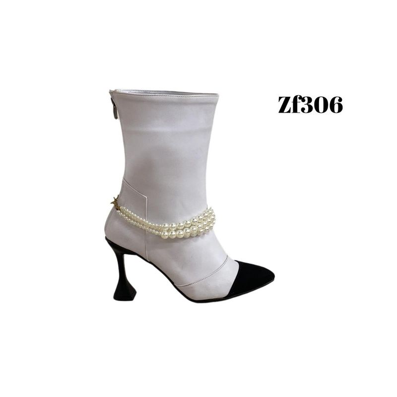 RopaZapatosMujerBotin blanco aplique perlas tacon