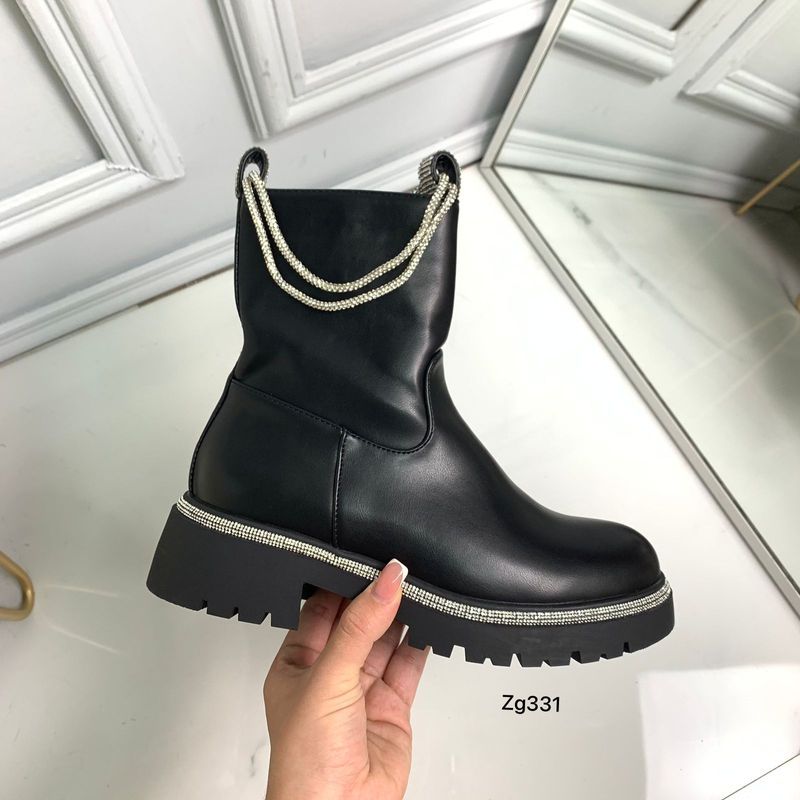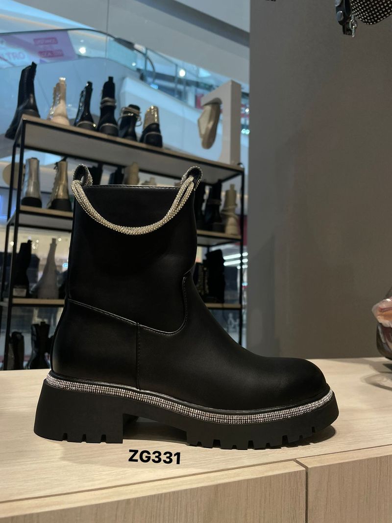 Botin negro apliques plateados brillantes cordon