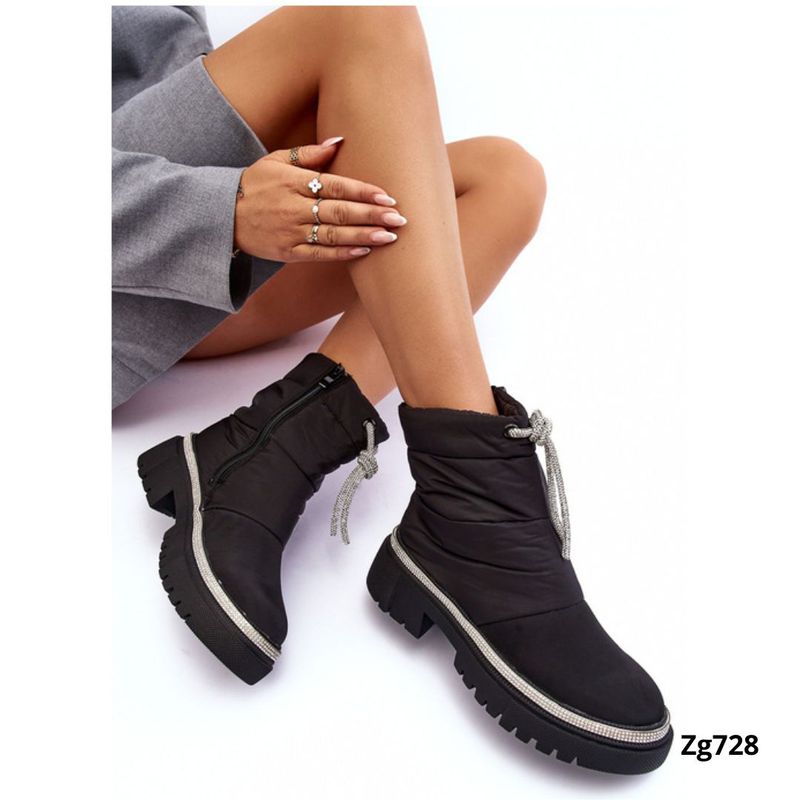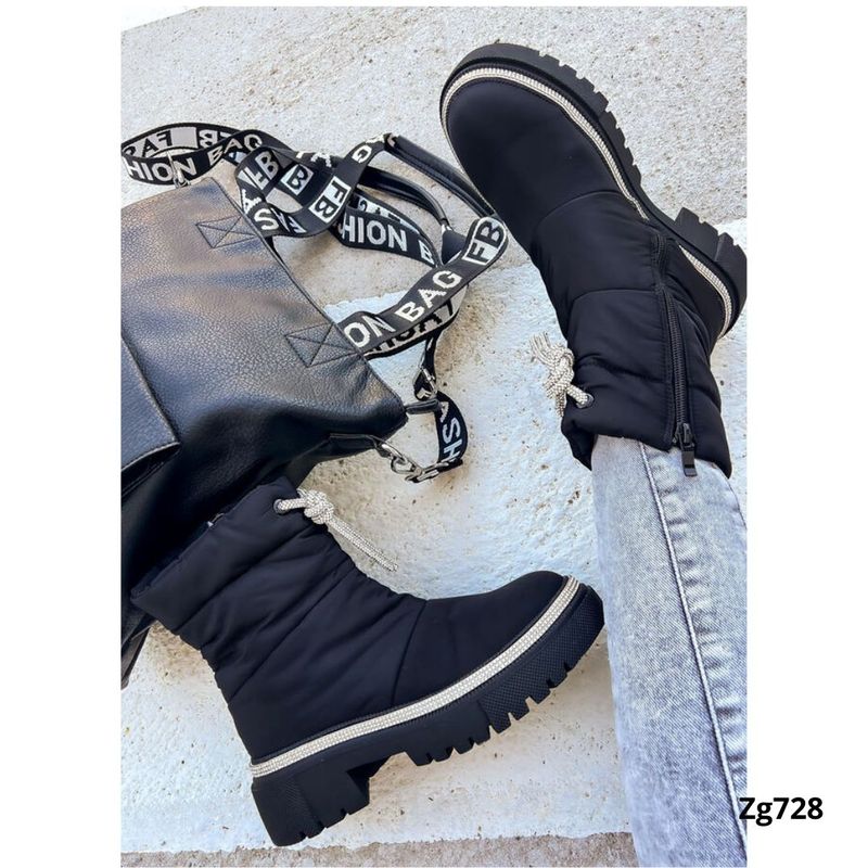 RopaZapatosMujerBotin negro cordon apliques plateado brillantes