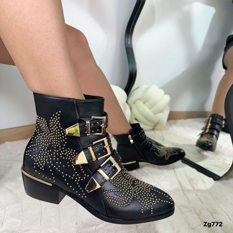 Especificaciones: Tacón: 4cm Tallaje: Todas nuestras tallas son europeas. El zapato europeo tiene una talla diferente al tallaje colombiano y está marcado como una talla más en la suela del zapato. La talla real y la equivalente a la colombiana es la que trae cada zapato con una etiqueta blanca en un sticker No nos haremos responsables por envíos y domicilios de cambios de talla que no sea la que tiene cada zapato en las etiquetas blancas. No Incluye: - Accesorios Recomendaciones: - Limpiarlos sólo de ser necesario, con un paño blanco para colores claros y paño oscuro para colores café, azul oscuro, grises y negro y usar un poco de frotex - No dejarlos remojando ni meter a la lavadora - Dejar secar la humedad a la sombra, nunca exponerlos al sol directo - Para manejar carro o moto debes tener cuidado con la fricción que implica esta actividad para proteger el producto (parte trasera, punta y tacón). - Debes tener especial cuidado con el vestuario que uses; ya que, debido al tratamiento de tintura utilizado en ellos, es posible que el color de esa prenda se trasfiera a tus zapatos - Un par de zapatos nuevos preferiblemente no deben ser usados por muchas horas consecutivas La garantía aplica para defectos de fabricación por despegue o descocida. El color de la imagen es de referencia y puede tener variaciones en el producto real. Los taches y apliques son accesorios de alto cuidado y buen uso por lo cual NO tienen garantía.