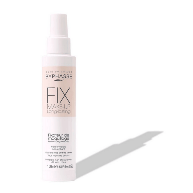 El spray fijador del maquillaje Byphasse fija y garantiza un acabado duradero de tu maquillaje, creando un velo invisible y no pegajoso. Contiene agua de rosa y aloe vera, para ayudar a calmar y proteger la piel, además de refrescarla.