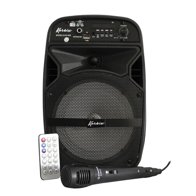 Espectacular oferta de sonido portátil, este hermoso parlante de sonido de alta fidelización, tiene la facilidad de reproducir por Bluetooth, USB, Micro SD Y FM Radio, con entrada Auxiliar, este hermoso parlante viene con un Micrófono Profesional de sonido nítido, un control con todas las funciones y lo puedas transportar sin problemas, el parlante trae batería de Litio de alta duración para que puedas armar las fiestas donde quieras o para que puedas hacer KARAOKE o lo que se le pueda ocurrir en cualquier lugar, el parlante tiene una pantalla digital.