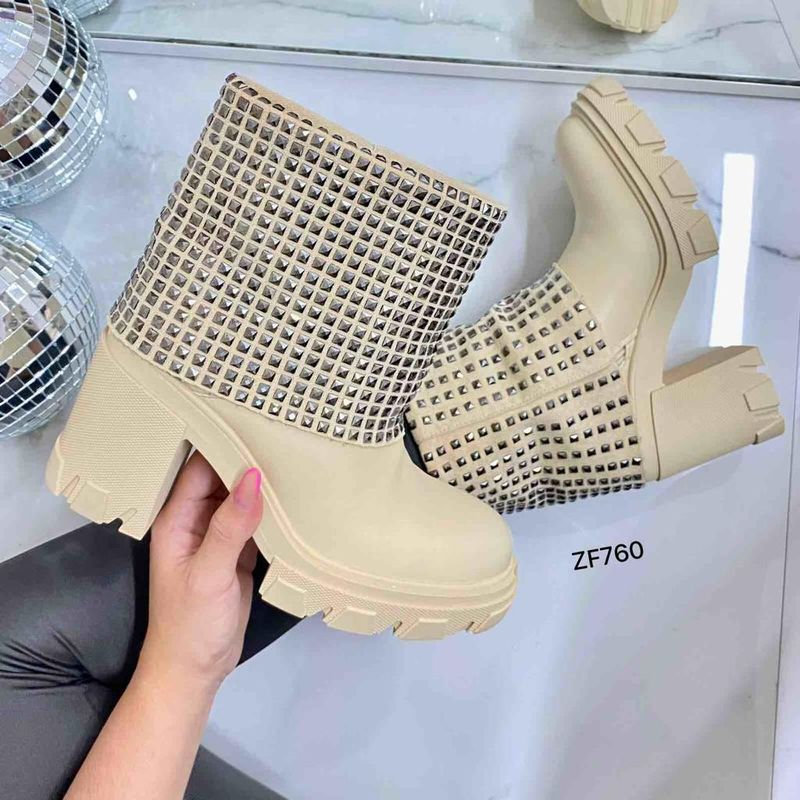 Botín con doblex color beige con apliques y tacón 8679.