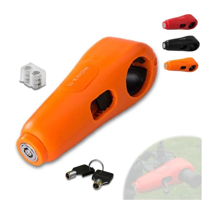 Protege tu moto o bicicleta de manera práctica y efectiva con este candado antirrobo de manillar y freno. Su diseño portátil y resistente bloquea el acelerador y la palanca de freno en segundos, brindando máxima seguridad frente a intentos de robo. Fácil de usar y transportar, es ideal para motociclistas y ciclistas que buscan tranquilidad y protección en todo momento.