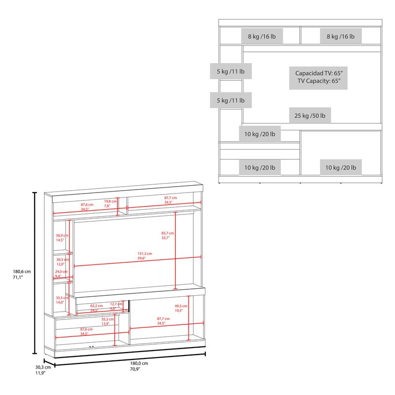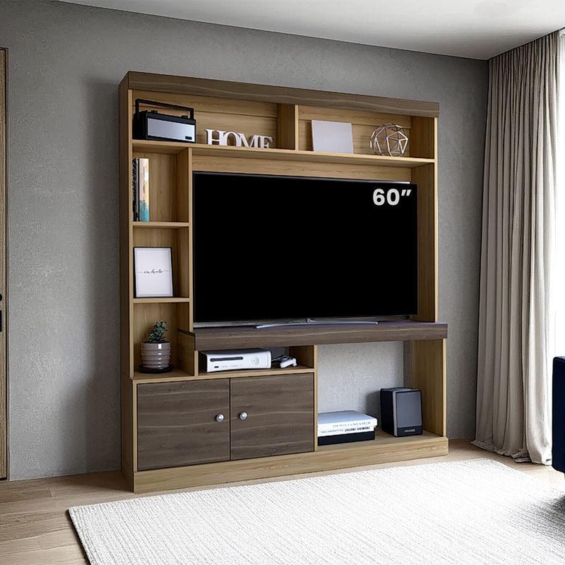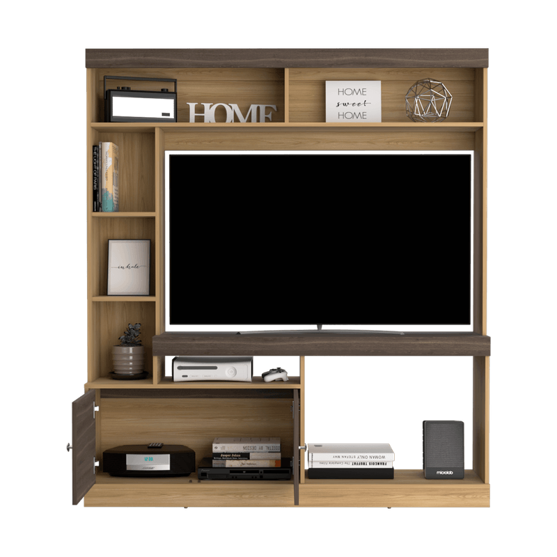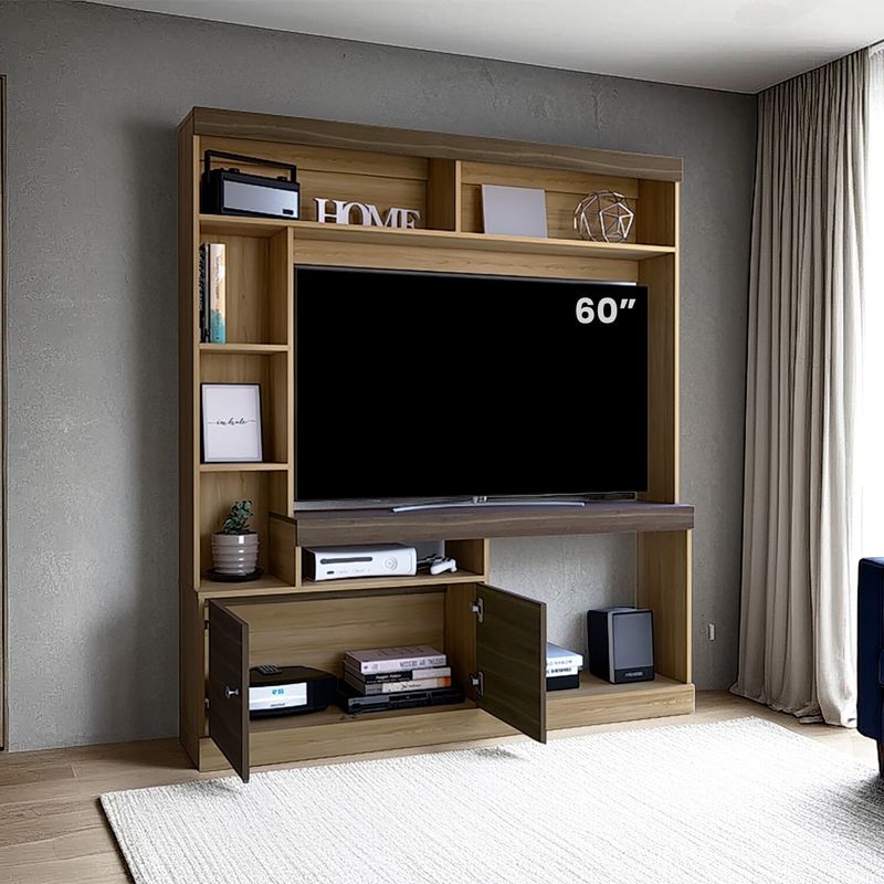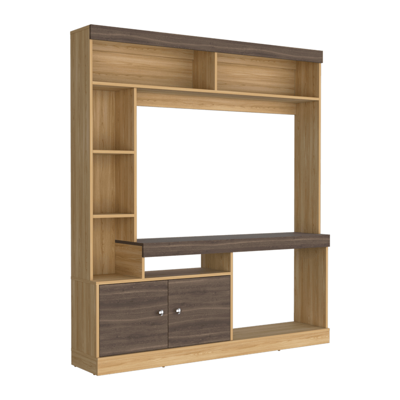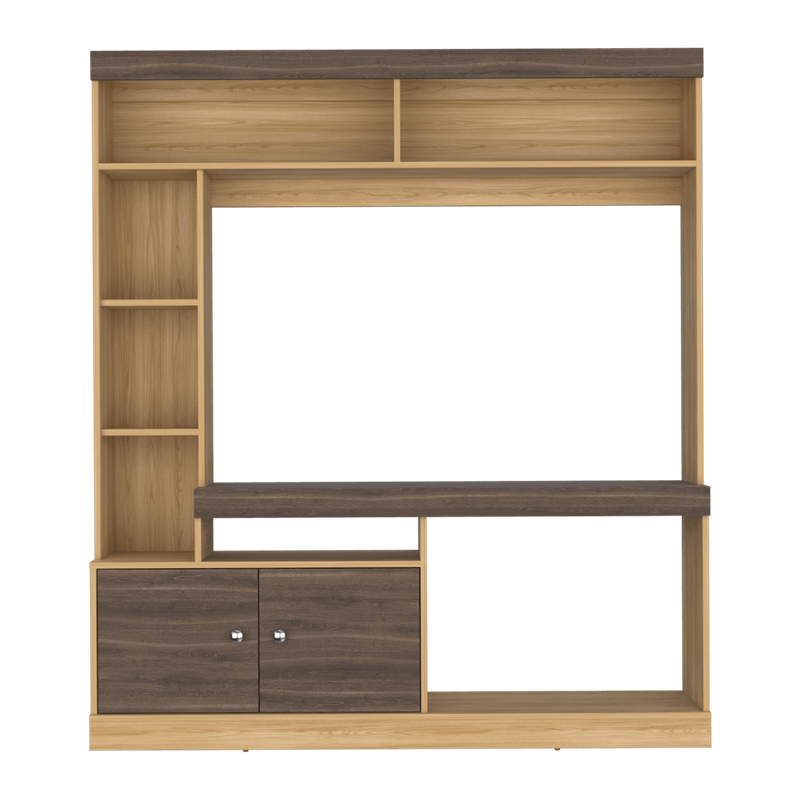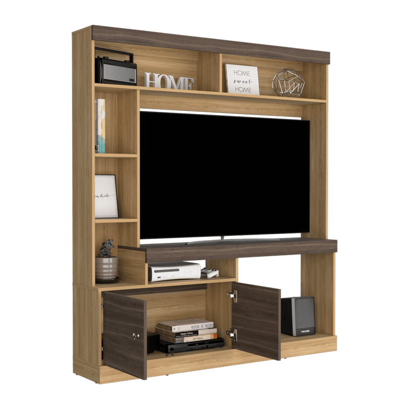 Centro de entretenimiento para TV de 55'' maximo, compartimientos para objetos decorativos, dos puerts abatibles con medidas de: ALTO 180,6 ANCHO 180 FONDO 30,6