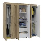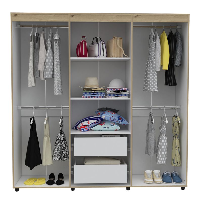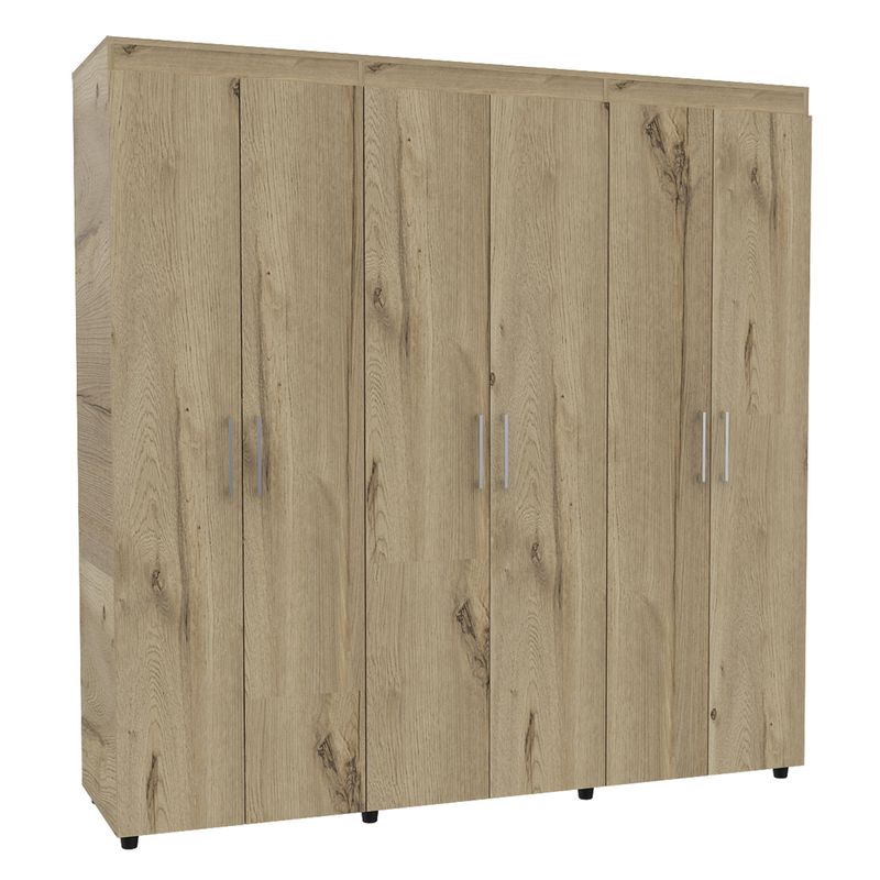 Closet con amplios espacios para organizar, diseño funcional con seis puertas abatibles y dos cajones, multiusos con correderas metalicas, tubos para colgar y ordenar ropa, manijas metalicas con medidas de: ANCHO 180 ALTO 181,5 PROFUNDO 51,5