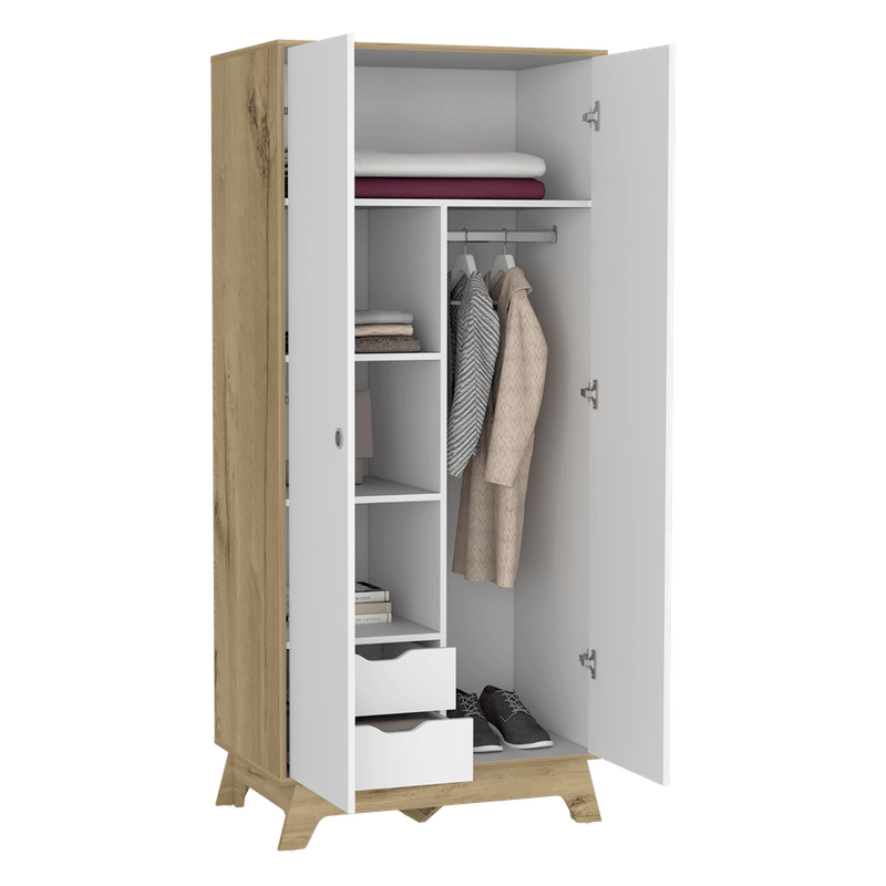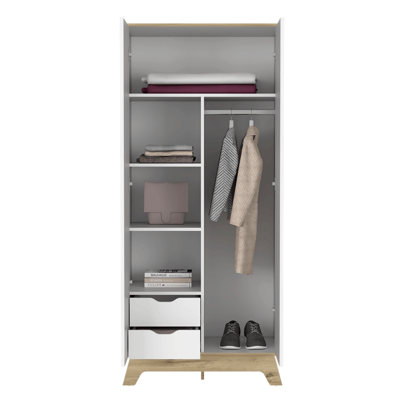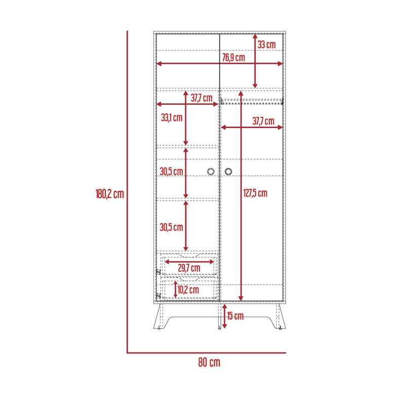Closet con dos cajones, dos puertas abatibles, diseño moderno y facil armado con medidas de: ALTO 180,2 ANCHO 80 FONDO 50