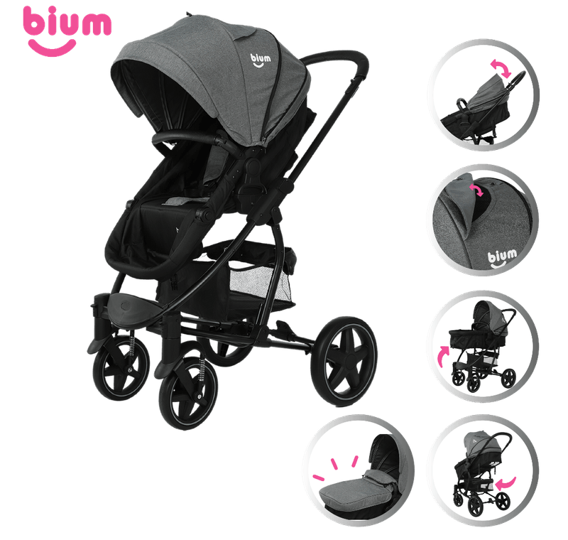 Coche apto para bebés desde el nacimiento, con sistema dos en uno ya que permite la función de moisés convertible facilmente en silla de pases todo en un mismo marco. Silla reversible para llevar al niño en sentido hacia ó en contra de la marcha para tener siempre a la vista a los más pequeños. Espaldar de múltiples posiciones de reclinado, cuenta con arnés de seguridad de 5 puntos y accesorios en cuero que le dán un toque especial, manillar ajustable en dos posiciones y capota redondeada con 3 niveles que le protege del sol. De fácil plegado y con llantas grandes que amortiguan y aumentan la comodidad en los paseos. Estructura en acero de gran resistencia y con una amplia canasta de compra.