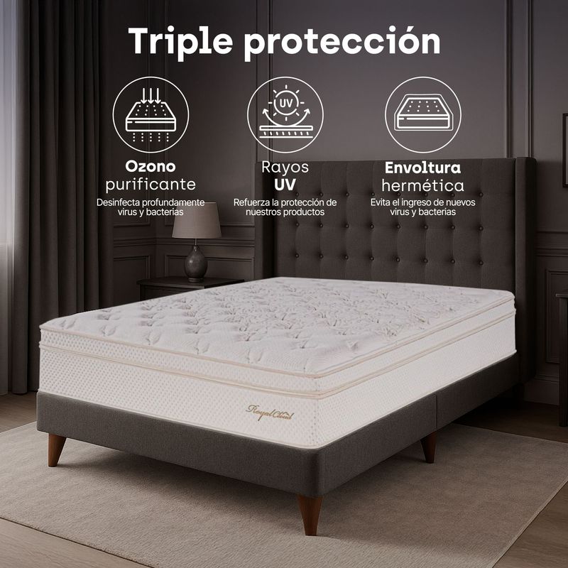 Colchón Royal Cloud 2 Almohadas – Máxima Comodidad con Higiene Total Descansa como en las nubes con el Colchón Royal Cloud, creado para ofrecerte una sensación única de suavidad, confort y naturalidad.