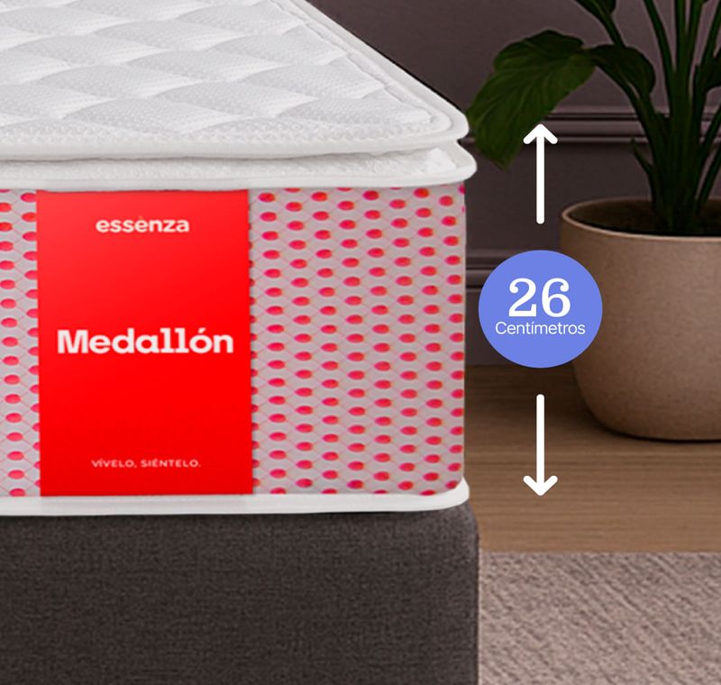Disfruta de un descanso reparador con el Colchón Medallón Essenza, diseñado para brindar comodidad y durabilidad. Su tela Jacquard de alta calidad asegura resistencia y suavidad al tacto, mientras que los resortes Cosisoft, con tecnología suiza, proporcionan un soporte excepcional que se adapta a tu cuerpo. La banda Mesh integrada mejora la ventilación, manteniendo el colchón fresco y agradable durante toda la noche. Su robusto marco Zebra 25 garantiza estabilidad y firmeza, y el diseño One Side optimiza la comodidad para un sueño profundo y relajante. Ideal para quienes buscan calidad, confort y un descanso saludable en cada noche.