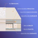 TENCEL™ Lyocell y Modal se producen con al menos un 50?% menos de emisiones de carbono y consumo de agua. Incorpora además fibras Zebra HD, con una estructura de celdas abiertas y tres niveles de firmeza, lo que permite una zonificación inteligente que aporta mayor durabilidad y una constante sensación de frescura.
