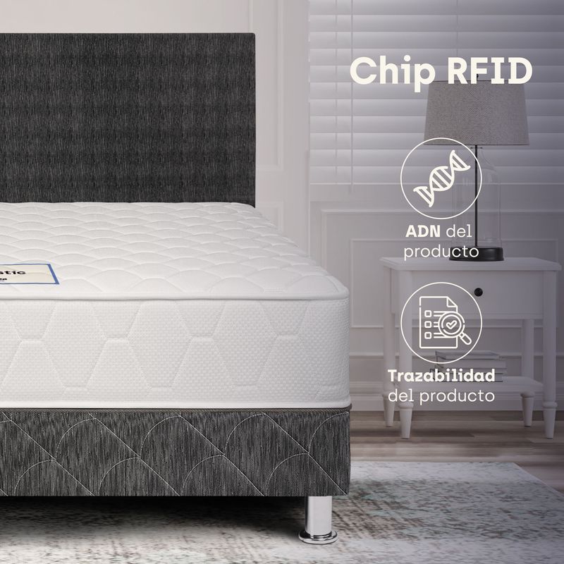 Es el único colchón en Colombia con tecnología RFID, un chip que almacena toda la información sobre su fabricación y materiales, ofreciendo máxima trazabilidad y confianza en la calidad del producto.
