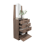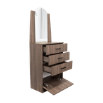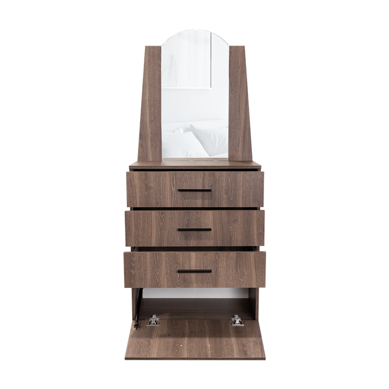 Diseño moderno, cuenta con 3 cajones y 1 puerta, manija metalica, incluye espejo y es de facil instalación con medidas de: ALTO 151 ANCHO 63 FONDO 35,3
