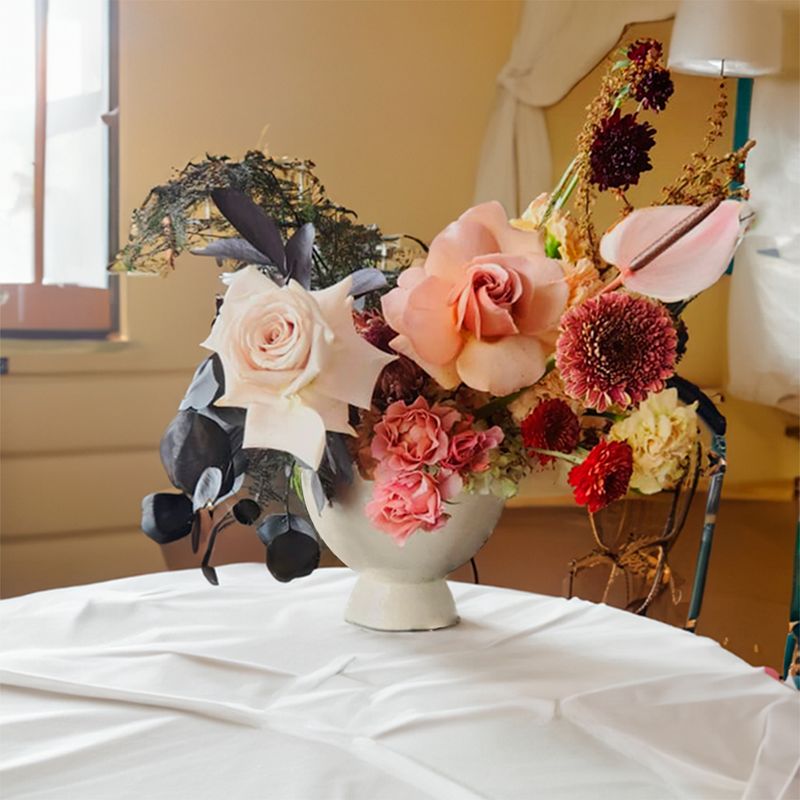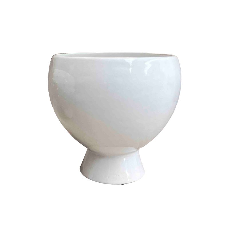 Copa en cerámica esmaltada ideal para crear arreglos florales, con un estilo minimalista y sobrio que decora espacios retro, modernos y/o contemporáneos. *No incuye flores