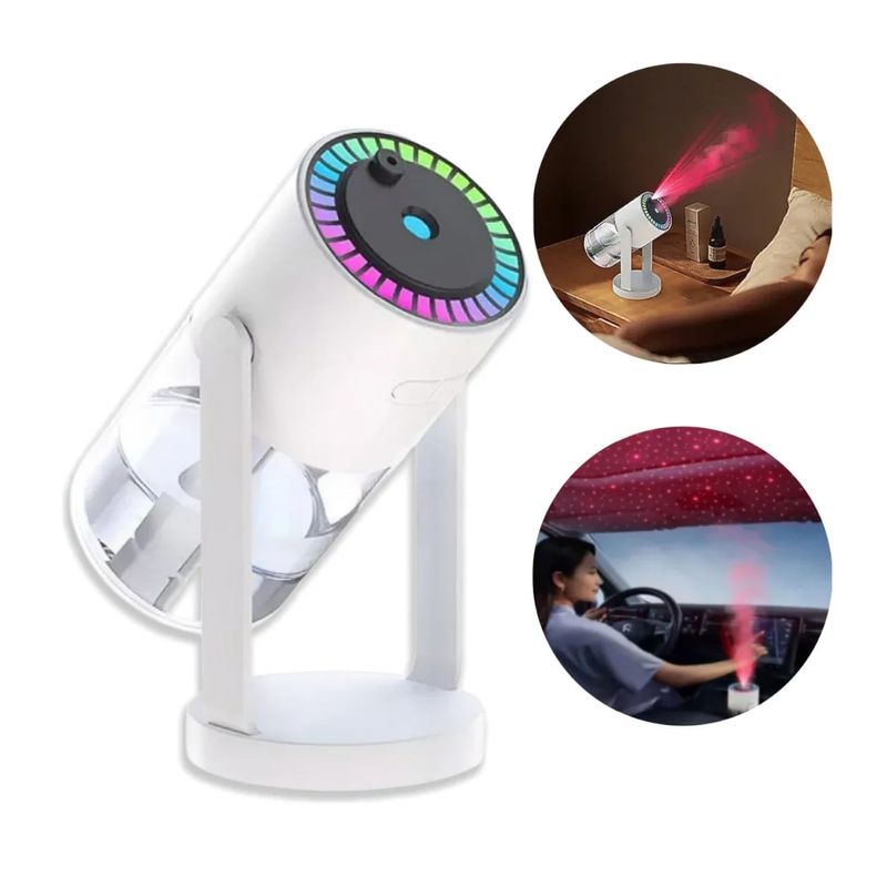 Convierte cualquier espacio en un ambiente relajante con este proyector de estrellas multifuncional. Funciona como humidificador, difusor de aromas y luz LED ambiental con efecto galaxia, ideal para mejorar el sueño, reducir el estrés y crear una atmósfera única en dormitorios, salas o espacios de meditación. Su diseño moderno permite ajustar el ángulo de proyección, y es recargable mediante USB, lo que lo hace práctico y portátil para usar donde quieras.