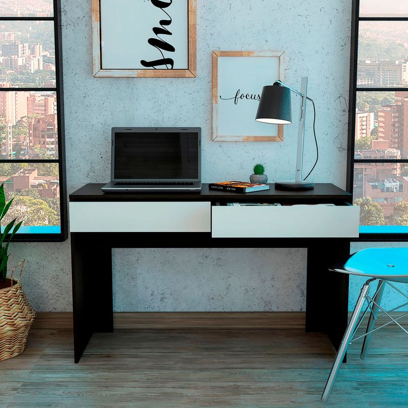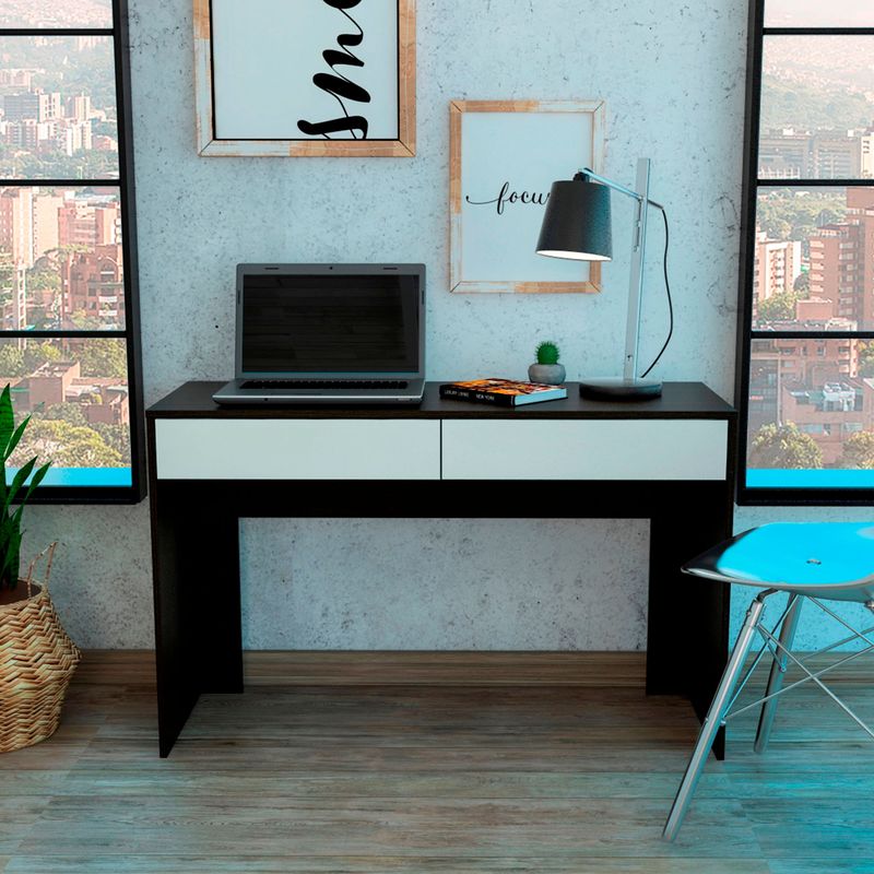 Escritorio con amplia superficie de trabajo, con dos cajones con medidas de: ALTO 75 ANCHO 120,2 FONDO 45