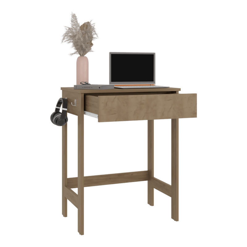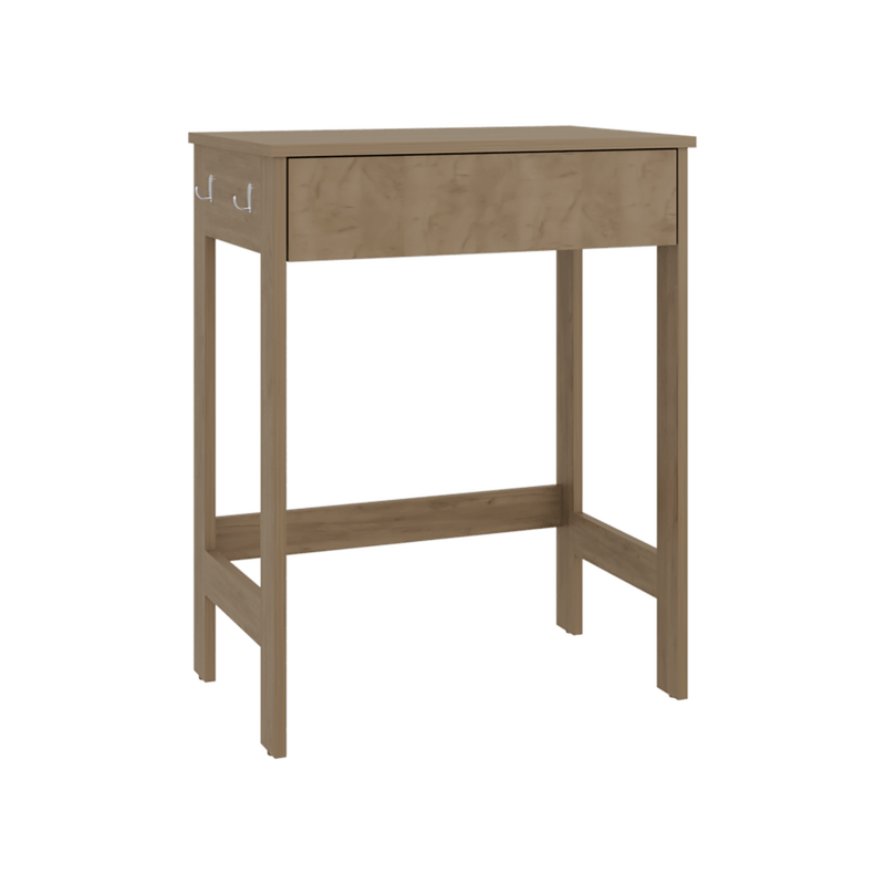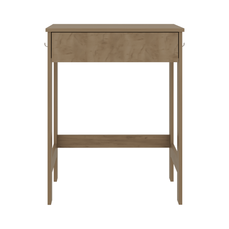 Escritorio, con superficio de trabajo, 1 cajon, incluye 4 ganchos para colgar, y es de facil instalación con medidas de: ALTO 77 ANCHO 60 FONDO 40