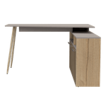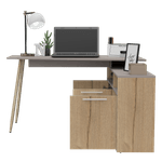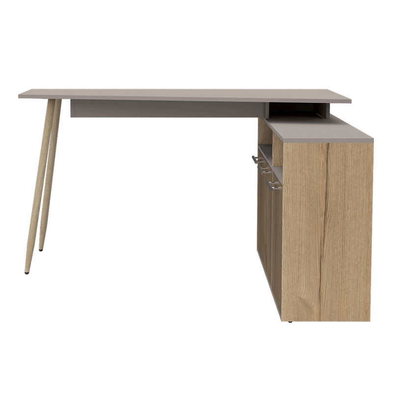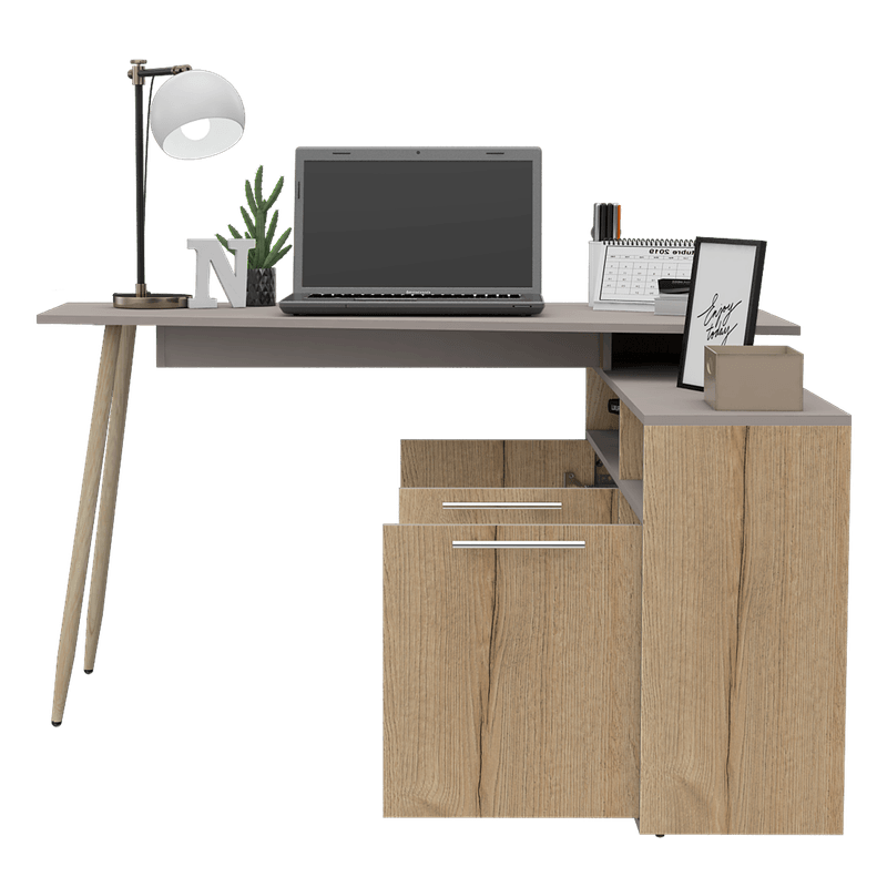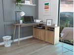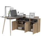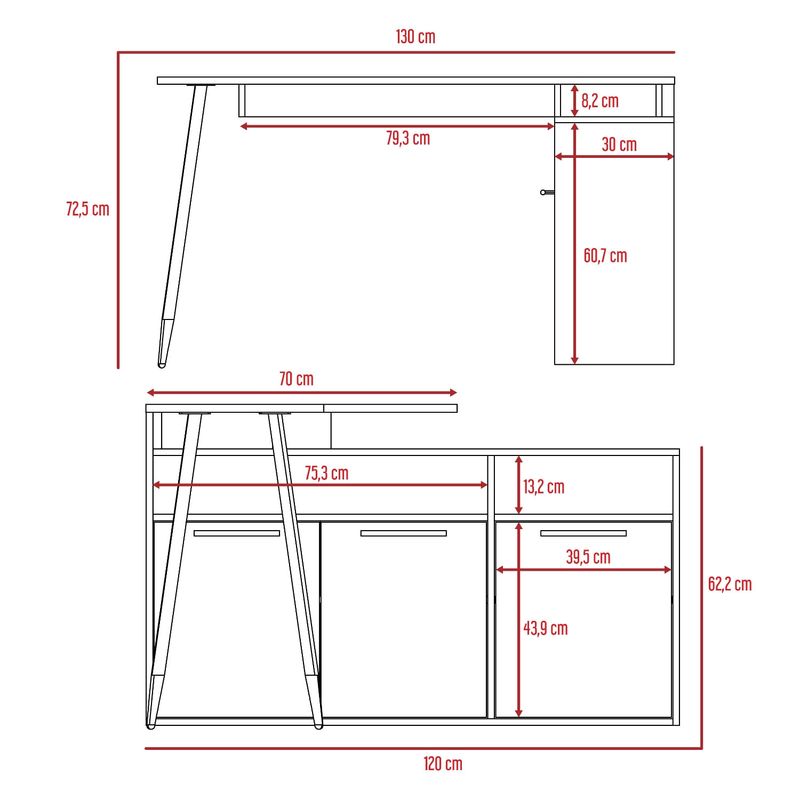Escritorio con diseño moderno, amplia superficie de trabajo, patas de madera y tres puertas abatibles con medidas de: ANCHO 130 ALTO 72,5 PROFUNDO 120