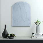 Espejo rectangular con lado ovalado .Usar solo en interiores, no exponer directo al sol, no golpear ni martillar el vidrio, limpiar con un paño ligeramente húmedo, Usar jabones suaves, evite el contacto directo con el agua, el fuego o la exposición a fuentes de calor.Ensamble a la pared con soporte en aglomerado (Chaflán) incluye tornillos y chazos