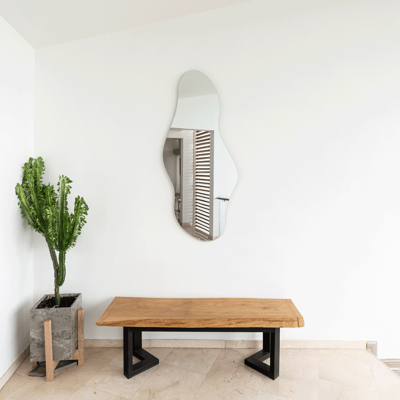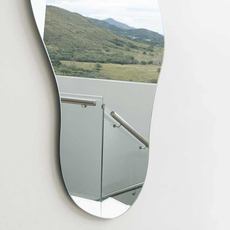 Espejo con forma irregular con ensamble a la pared con chaflán
