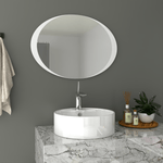 Espejo ovalado con diseño sandblasting, ensamble a la pared con chaflan.