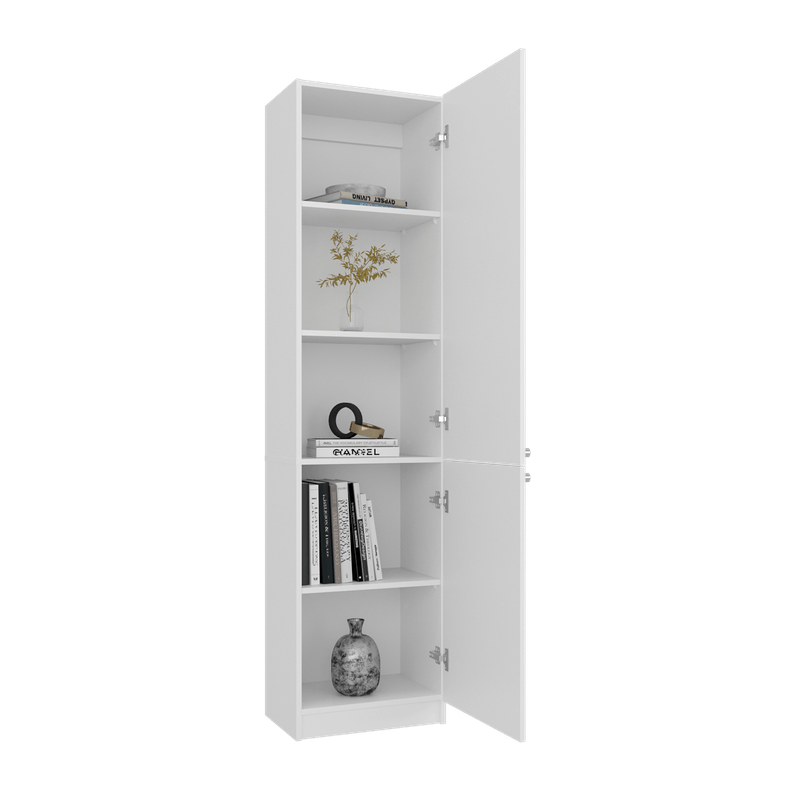 Estante con espacio para libros y objetos decorativos, dos puertas abatibles, de facil armado e instalacion con medidas de: ALTO 180,6 ANCHO 45 FONDO 31,4