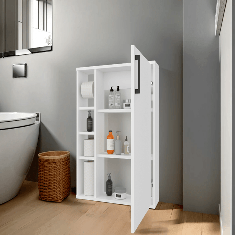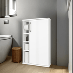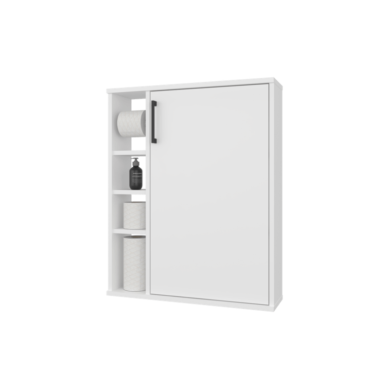 Gabinete de baño con espacio para colocar objetos, incluye espacio para colgar papel higienico y es de facil instalación con medidas de: ALTO 74,1 ANCHO 60 FONDO 15,6
