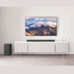 El diseño compacto se adapta perfectamente a tu sala, sin ocupar mucho espacio, y el subwoofer inalámbrico te da graves profundos sin desorden de cables.