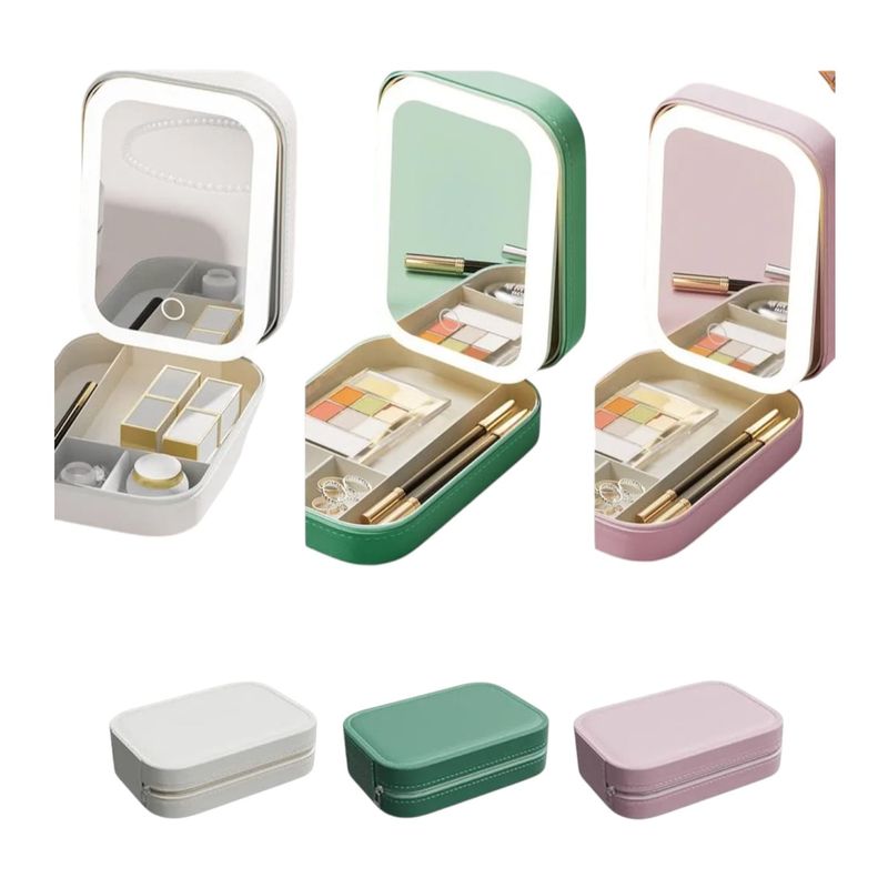 Haz que tu rutina de belleza sea más práctica y elegante con este joyero portátil con espejo y luz LED. Su diseño compacto y multifuncional te permite guardar maquillaje, joyas y accesorios, mientras el espejo con iluminación táctil facilita el maquillaje en cualquier lugar. Ideal para viajes o uso diario, este estuche organizador combina estilo, comodidad y funcionalidad en un solo producto.