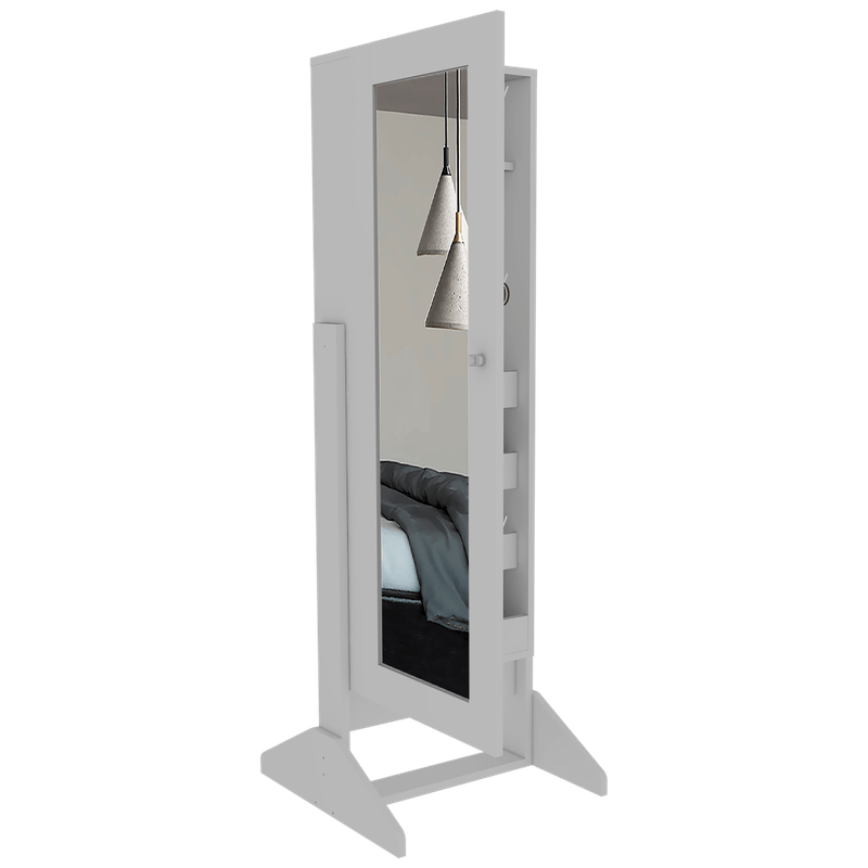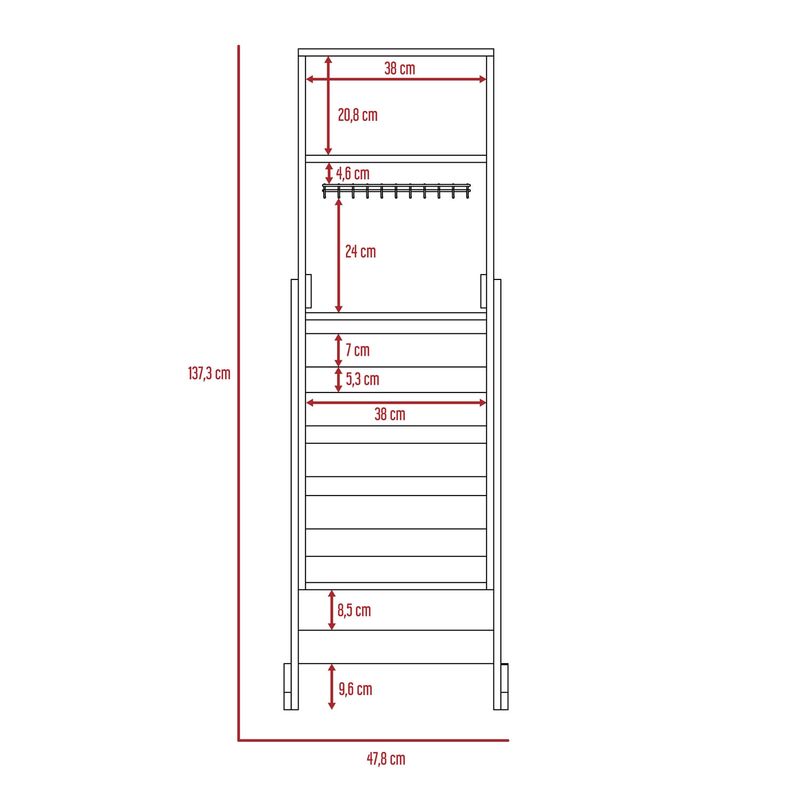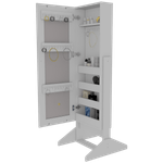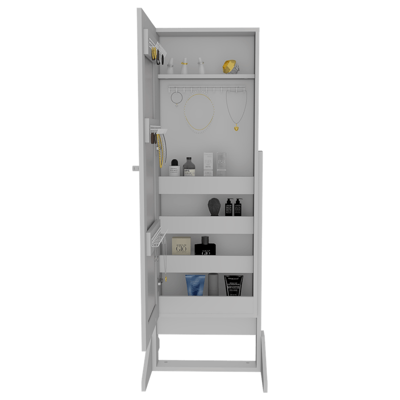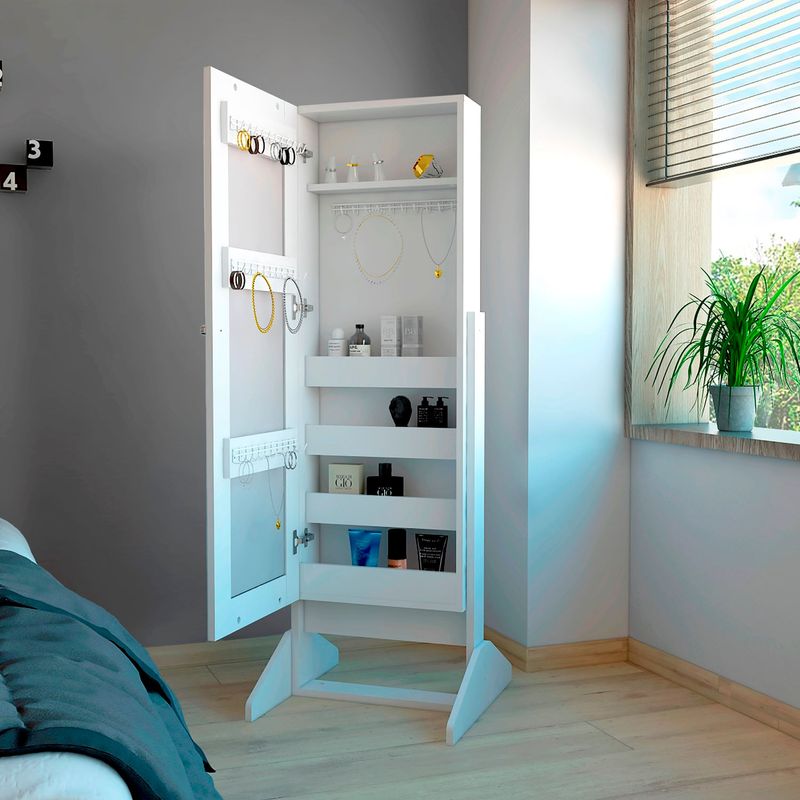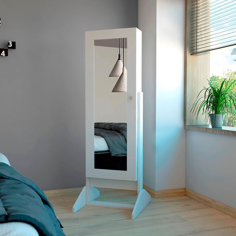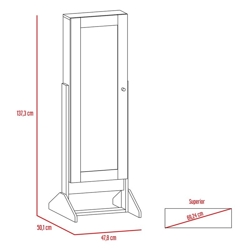 Joyero moderno, con entrepaños para ubicar accesorios y otros elementos, penchero multiple para colgar, amplias patas para mayor soporte, facil instalación con medidas de: ALTO 137,3 ANCHO 47,8 FONDO 15,05