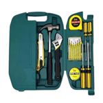 Haz frente a cualquier reparación en casa, oficina o taller con este completo juego de herramientas multiuso. Incluye lo esencial para arreglos rápidos y proyectos de bricolaje: martillo, destornilladores, alicates, cinta métrica, cinta aislante, llaves y más. Todo viene organizado en un práctico maletín portátil, fácil de guardar y transportar, ideal para tener siempre a la mano en cualquier situación.