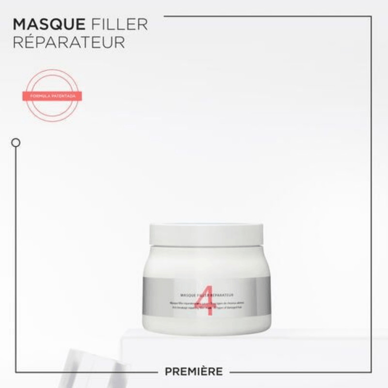 El relleno anti-rotura de Première es una mascarilla rica para todo tipo de cabello dañado que repara y reconstruye la fuerza interna del cabello sobreprocesado y protege contra más roturas . El cabello está más fuerte y más hermoso.