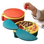 Mantén tus snacks, frutas, frutos secos y dulces organizados con este práctico contenedor giratorio de dos niveles. Su diseño moderno con tapas en forma de pétalos y divisiones internas permite almacenar diferentes alimentos de forma ordenada, fresca y a la mano. Ideal para reuniones, picnics, oficinas o el hogar, es perfecto para sorprender a tus invitados y aprovechar mejor el espacio.