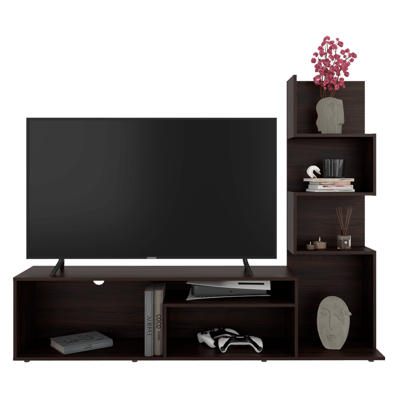 Mesa de tv con un disño moderno, con espacio para colocar objetos decorativos, de audio y video, con capacidad de tv hasta 55" con medidas de: ALTO 134,4 ANCHO 170 FONDO 35