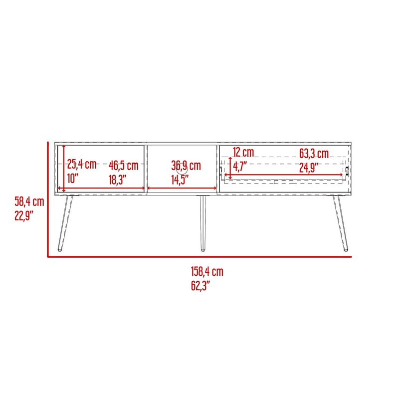 Mesa de TV moderna, con espacio para ubicar objetos decorativos, de audio y video, con capacidad para TV hasta 70" con medidas de: ALTO 58,4 ANCHO 158,4 FONDO 35
