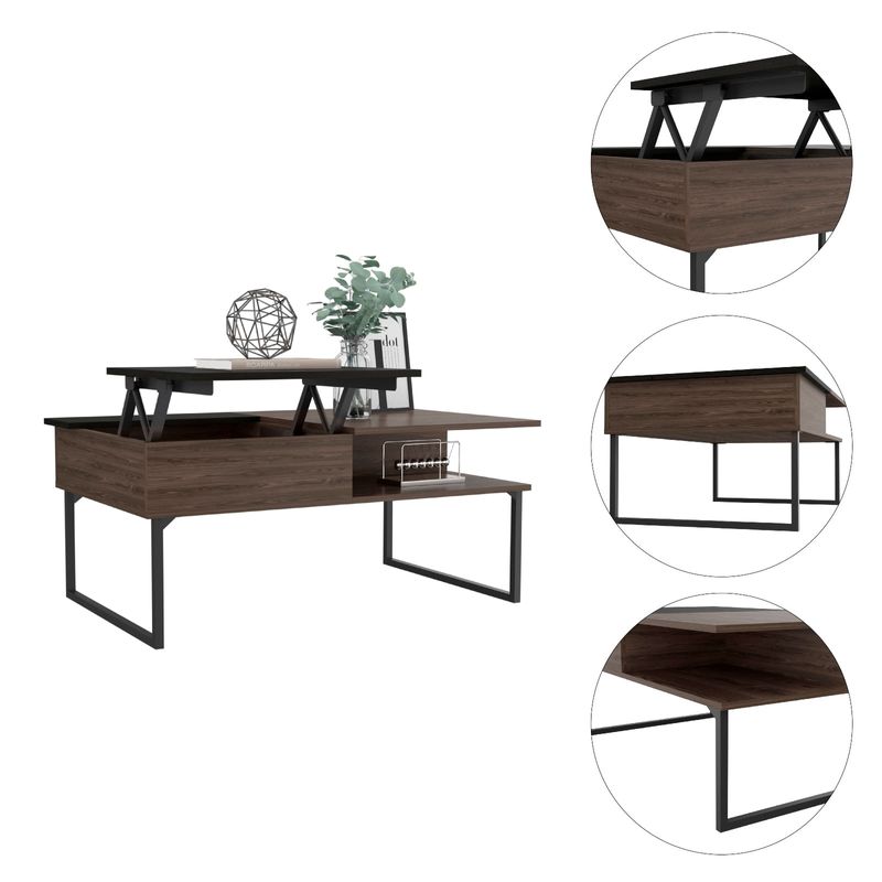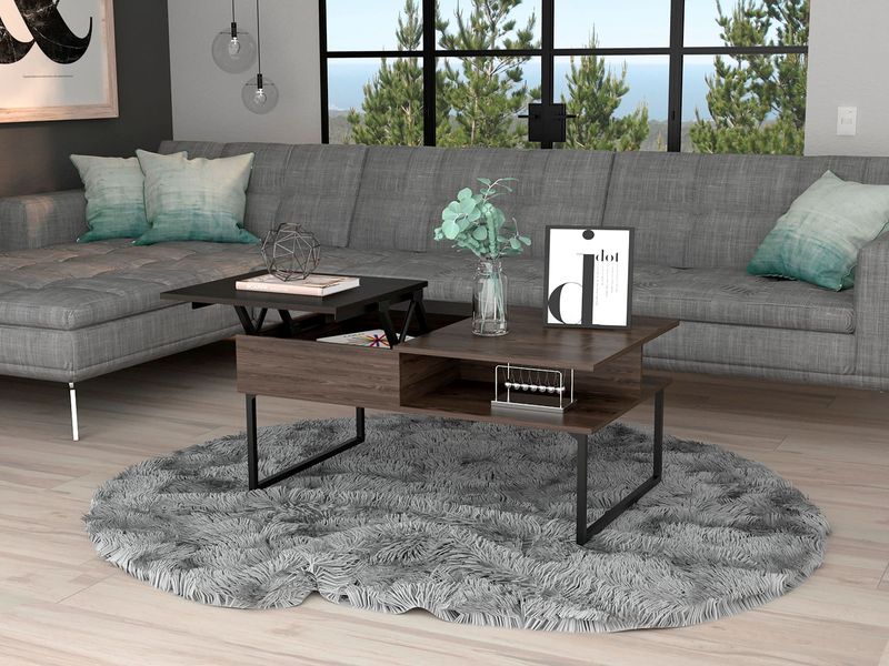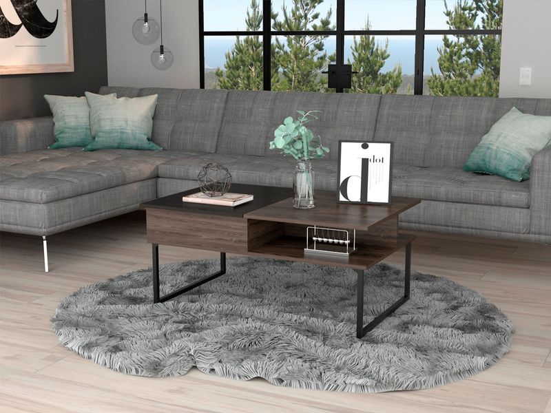 Mesa funcional extensible , espacios inferiores para colocar objetos decorativos, libros u otros, patas metalicas con medidas de: ANCHO 105,1 ALTO 45,7 PROFUNDO 66