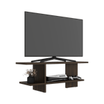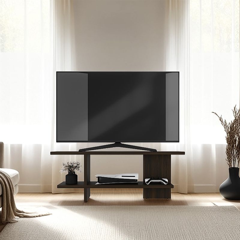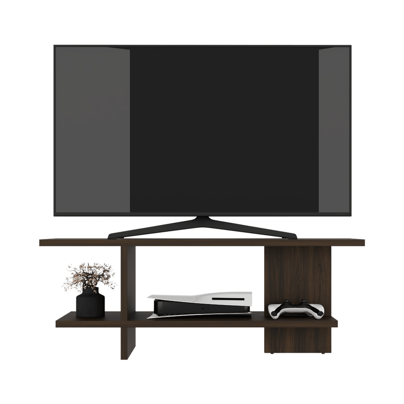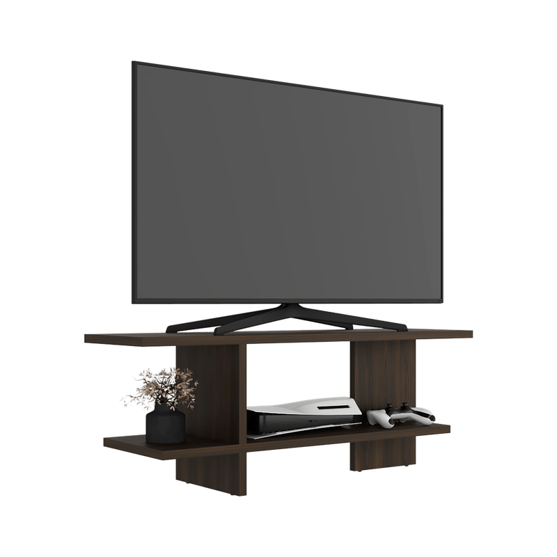 Espacio amplio para colocar tv hasta de 50 pulgadas, espacio para poner objetos decorativos y es de facil instalacióon con medidas de: ALTO 45 ANCHO 120,2 FONDO 34,9