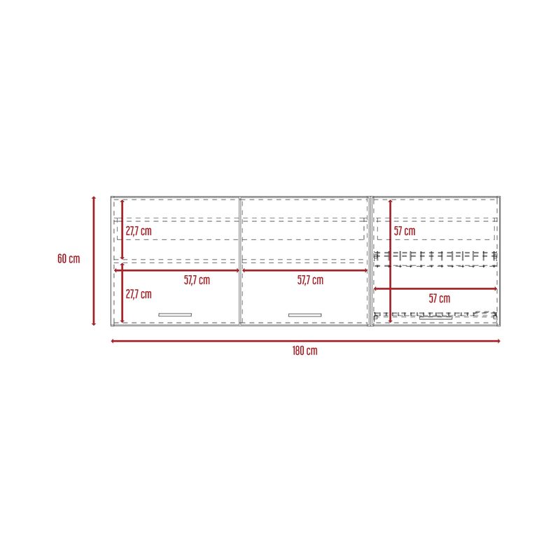 Modulo superior de cocina con diseño minimalista, manijas metalicas, sirve para meson derecho o izquierdo, tres puertas abatibles con medidas de: ALTO 60 ANCHO 180 FONDO 33,8