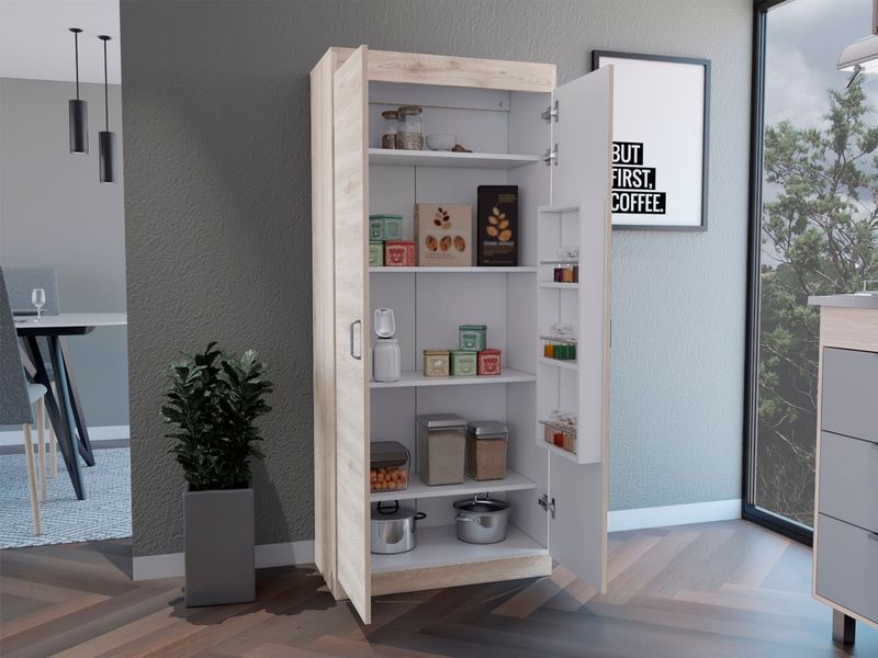 Mueble Alacena multiusos, posee cuatro entrepaños, amplios espacios para guardar utensilios de cocina, alimentos, estante aficional para mayor capacidad de almacenamiento, manijas metalicas, nuevo tablero turco mas economico con medidas de: ALTO 160,75 ANCHO 70 FONDO 36,35